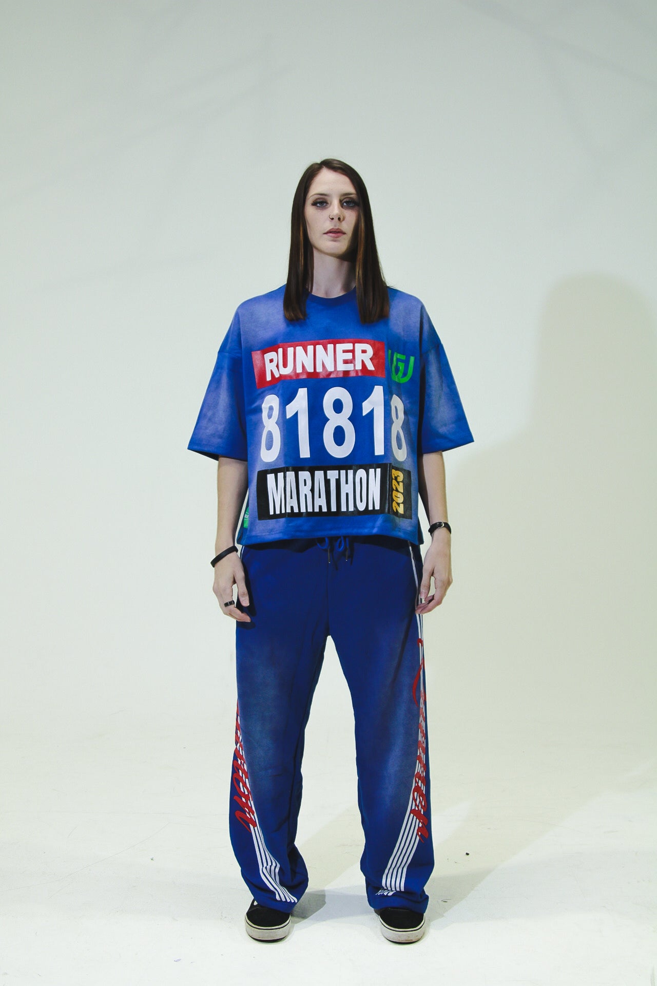 The Marathon Runner Pants, made from 100% cotton. It's a reminder to never give up on what you're striving for. The number 818 stands for abundance, prosperity, and a twin flame connection. Run your race. Wear Your Story.