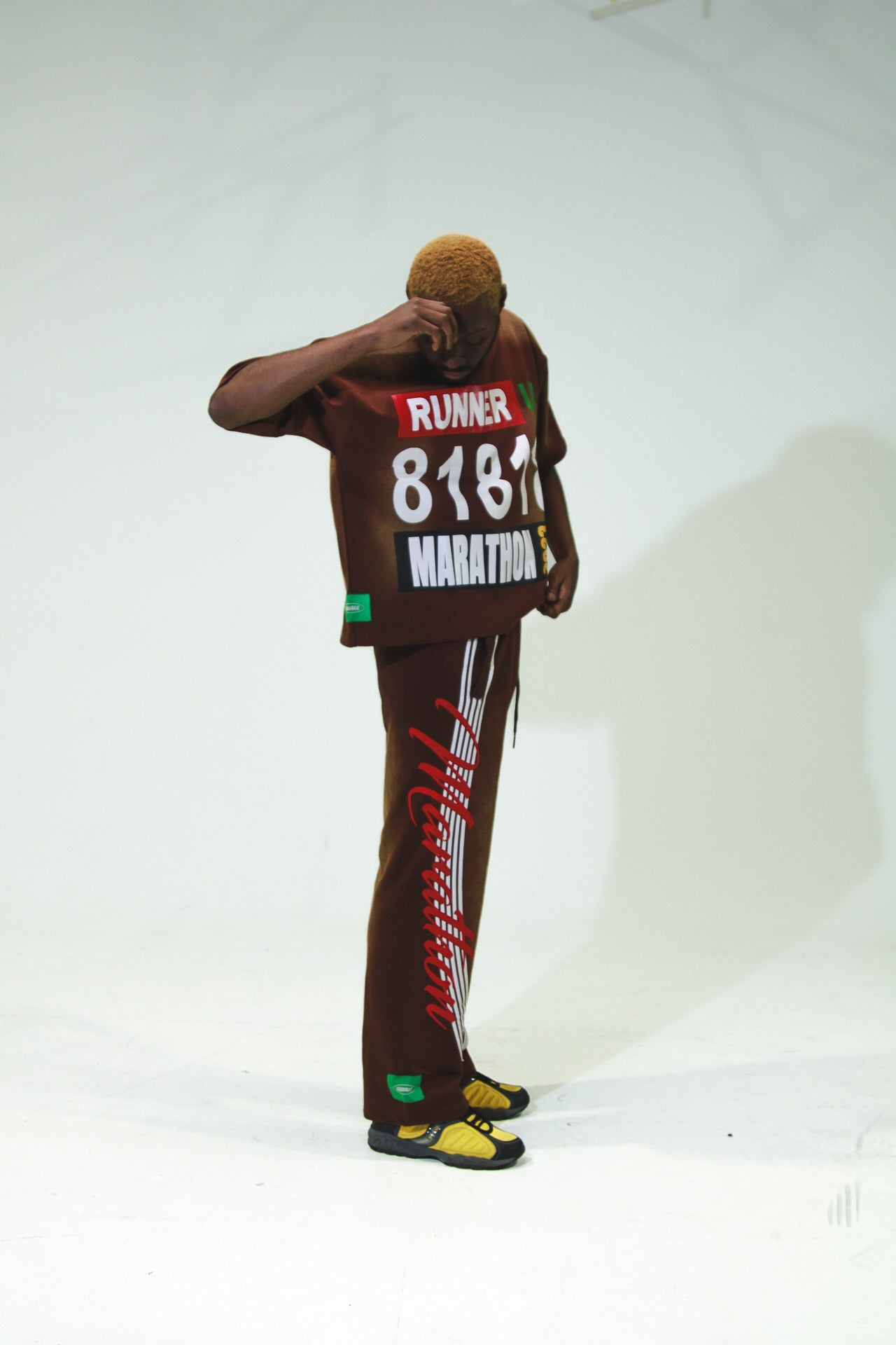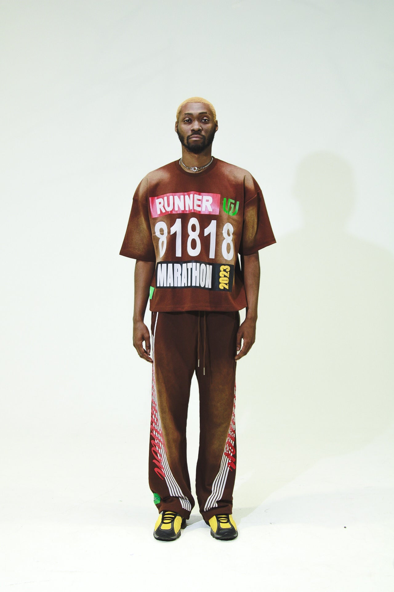 The Marathon Runner Pants, made from 100% cotton. It's a reminder to never give up on what you're striving for. The number 818 stands for abundance, prosperity, and a twin flame connection. Run your race. Wear Your Story.
